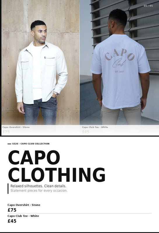 CAPO is it ltalian for 'boss', it is a godfather/mafia saying meaning 'boss of all bosses'. Furthermore Italy is renowned for its fashion heritage and is widely regarded as a fashion powerhouse, we are a British brand with the Italian Touch.